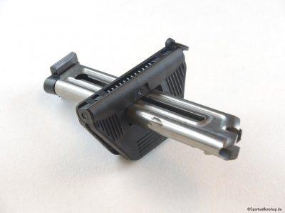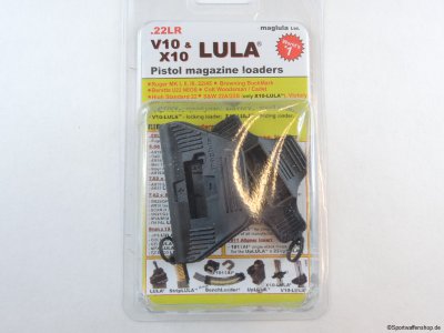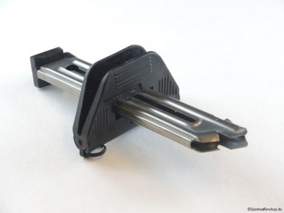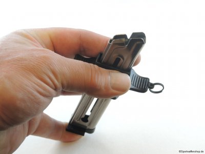 Preis: 23,95 € inkl. gesetzl. MwSt. zzgl. Versand Artikelnr.: 1755Zwei hervorragend funktionierende Magazinlader speziell für Kleinkaliber-Pistolenmagazine z.B. von Ruger, Smith&Wesson, Hämmerli und Walther. X10 funktioniert wie ein klassischer Push-Down-Clip, den man auf vielerlei Art beim Laden und auch Entladen halten kann. V10 ist als selbsthemmende Klammer mit zwei unterschiedlichen Klammerkräften (+/-) ausgebildet. So ist für jeden Geschmack der perfekte Lader dabei. Eine wirklich gute Idee.